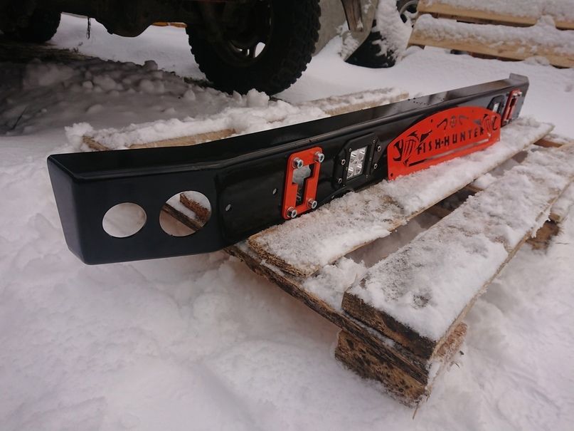 Бампер силовой задний Фишхантер ( комплектация 012) изготавливается из конструкционной стали 4 мм. по самым высоким стандартам качества ISO 9001 . Комплектуется светодиодными фонарями заднего света суммарной мощностью 40 Ватт