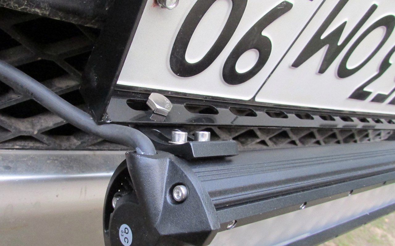 Предназначена для защиты номерного знака и крепления дополнительной оптики (ходовых огней, противотуманных фар, светодиодной балки).
