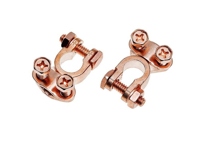 Клеммы АКБ имеет простую и надёжную конструкцию: зачищенные провода потребителей соединяются с клеммами посредством прижимной планки.